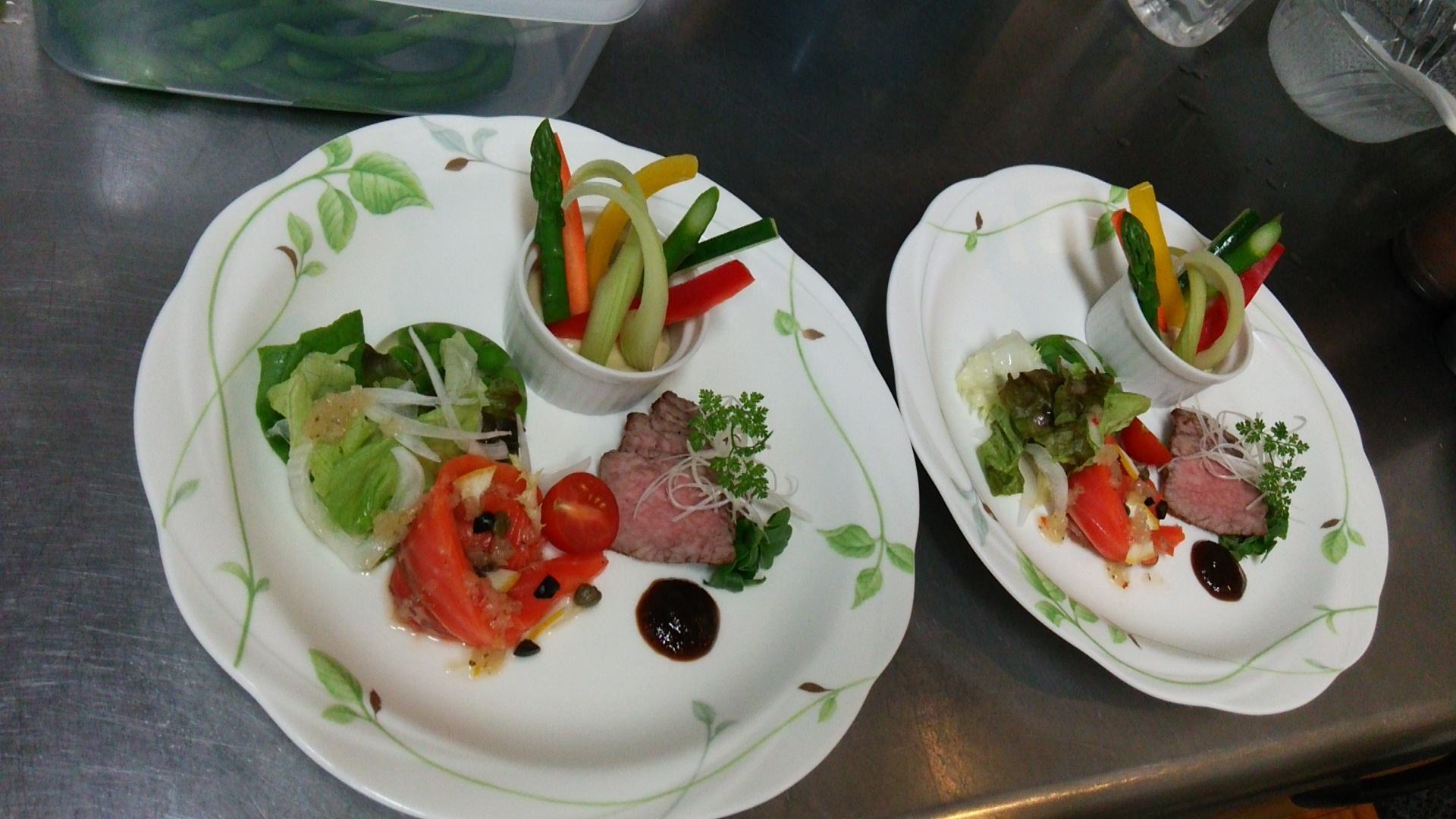 サーモンのマリネ、 冷製バーニャカウダ、 ローストビーフ、 でした。